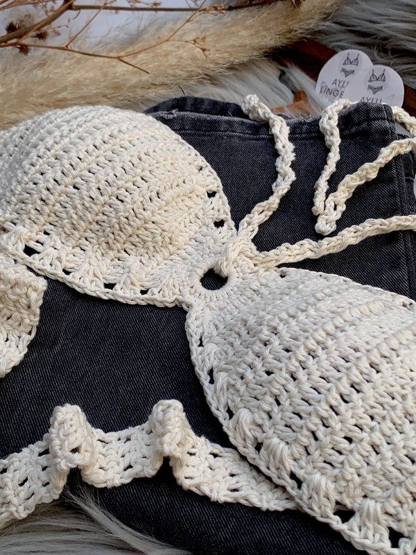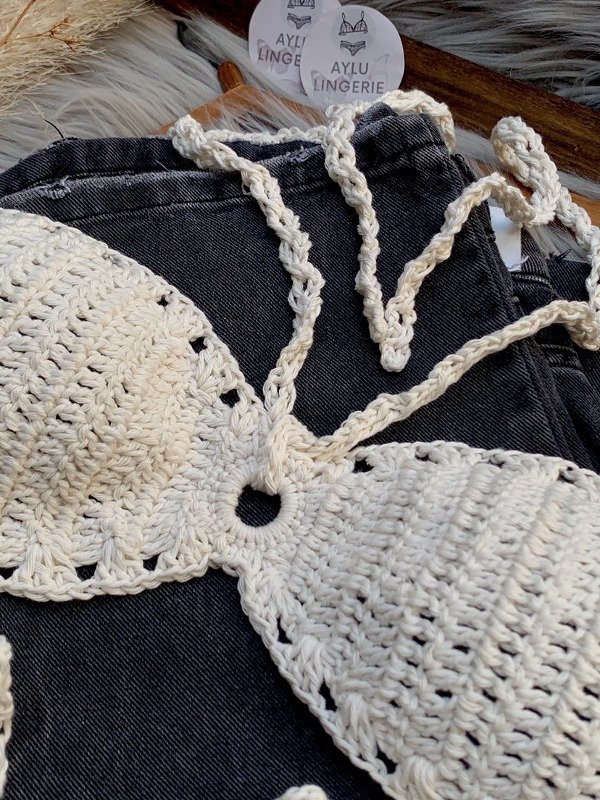 🧶 | Hecho 100% en hilo de algodón, viene con tiras para atar en el cuello y espalda.